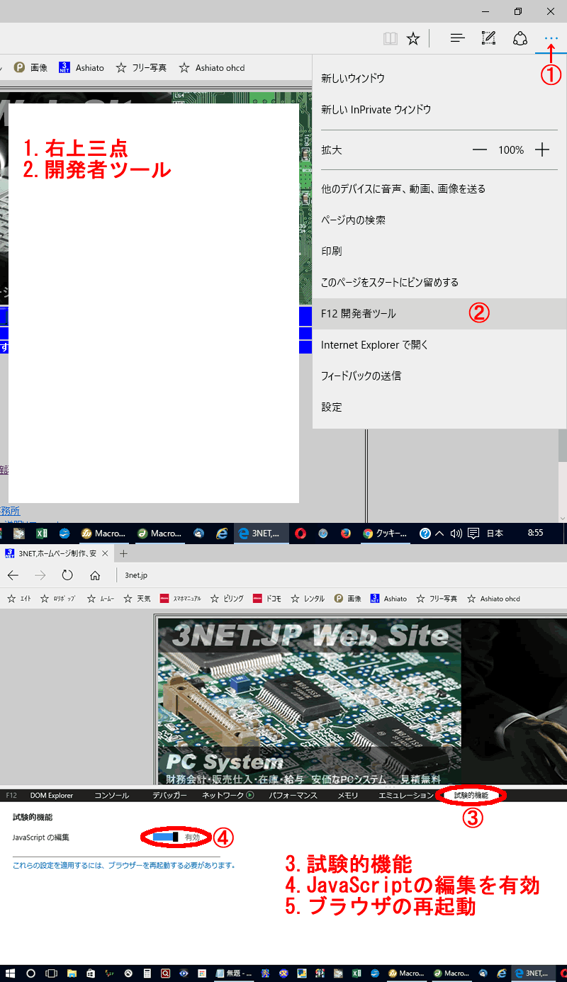 ジャバスクリプト(JavaScript)をオン(有効)にする方法 マイクロソフトエッジ(MS Edge25.0)編
