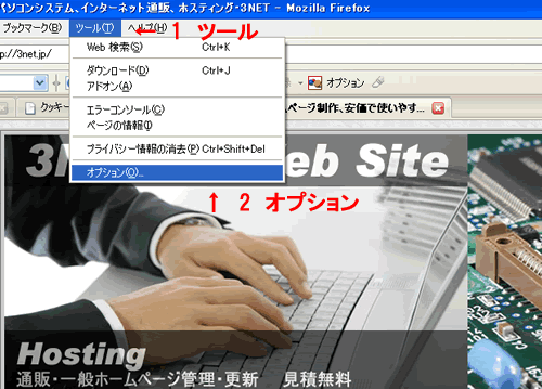 [ツール]→[オプション]→[プライバシー] 設定方法 |