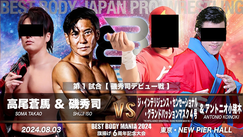 〇ジ・インテリジェンス・センセーショナル・グランドパッションマスク4号&アントニオ小猪木(9分21秒、逆片エビ固め) ●高尾蒼馬&磯秀司